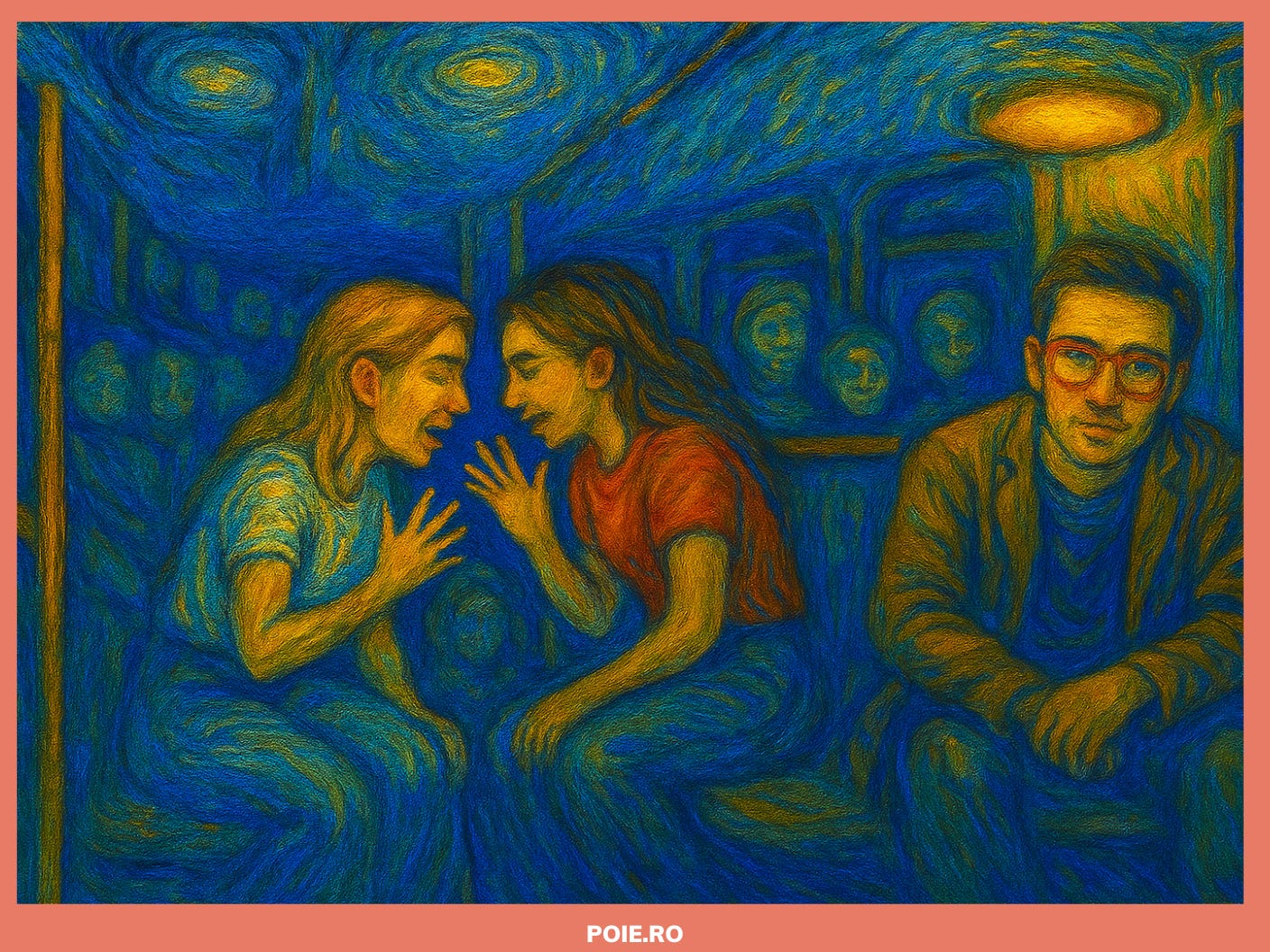 Sunt în metrou. Stau tolănit pe un scaun, în mirosul ăsta umed și familiar, înconjurat de indiferența oamenilor cu nasul în telefon. O voce tânără taie liniștea din vagon: