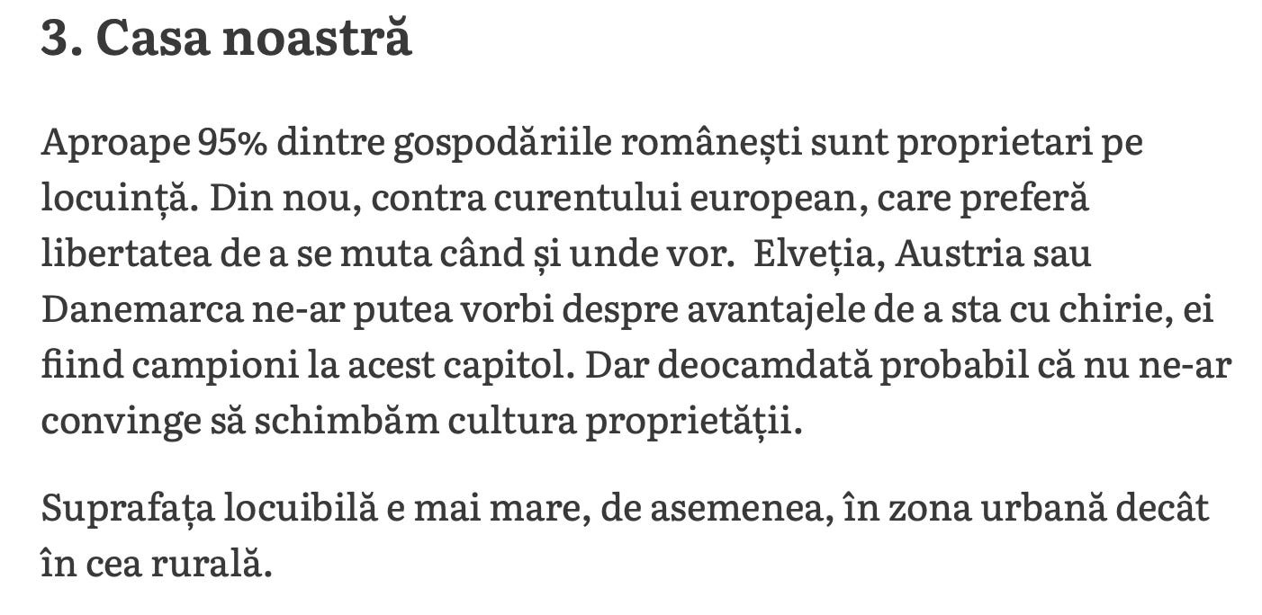 Fără să descâlcim nimic astăzi, n-ai cum să nu remarci tonul aproape disprețuitor al partizanilor ideologici, jurnaliști din media economică mainstream, față de aspirația “omului simplu” de a avea propria sa locuință. Aceștia sunt oamenii care netezesc drumul “colecționarilor”, de bună voie sau plătiți de colecționarii de apartamente, prin idealizarea statutului de chiriaș – dar vai, câtă flexibilitate vei avea că nu te legi la cap cu un apartament. Hah.